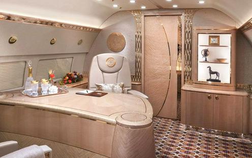 En ese momento, se detalló que uno de los Boeing fue convertido en una aeronave premium. A bordo, cuenta con un dormitorio VIP, un baño privado con ducha y bidé, un escritorio hecho a medida y un sillón de masajes. Para el acabado de la cabina se utilizaron materiales costosos, incluyendo detalles dorados. Hay monitores y pantallas táctiles por todas partes.
