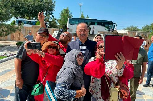 El Primer Ministro de Uzbekistán, Abdulla Aripov, recibe al primer grupo de peregrinos de Malasia, julio de 2022. Foto del servicio de prensa del Comité Estatal de Turismo de Uzbekistán