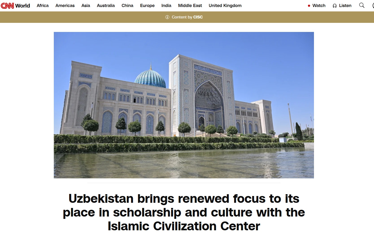 El sitio web CNN World ha publicado un artículo dedicado al Centro de la Civilización Islámica de Uzbekistán. Así lo informa el servicio de prensa del CCI.