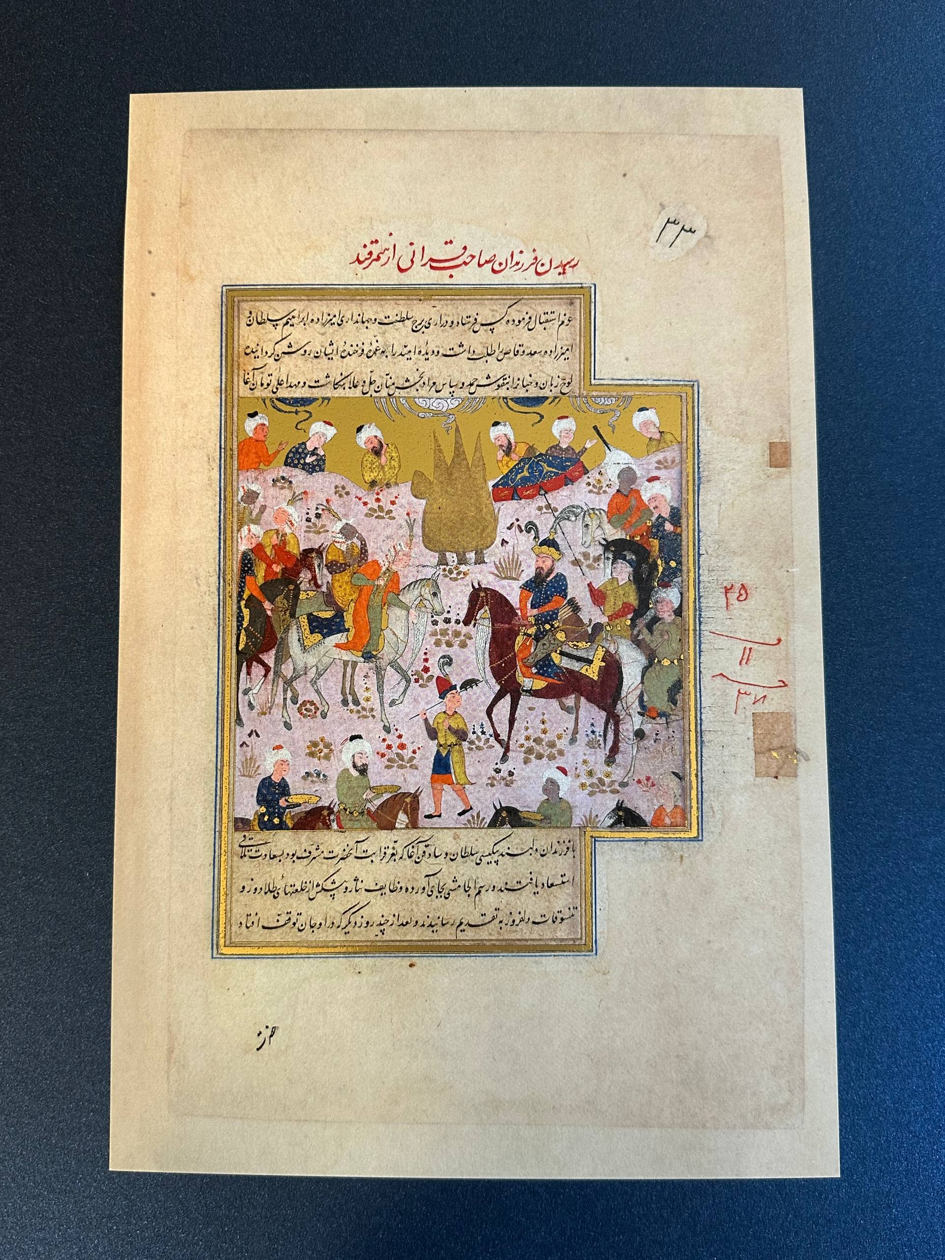 La pieza central del encuentro fue la exhibición de una edición facsímil del «Zafarnama» (Libro de las Victorias), la famosa crónica de la era timúrida de la colección del Museo Británico. El «Zafarnama» contiene una descripción detallada de las campañas de Tamerlán, la organización del estado y la vida cortesana, pero su valor va mucho más allá del texto histórico: las miniaturas, la caligrafía, los ornamentos y el color convierten este manuscrito en una auténtica obra de arte.